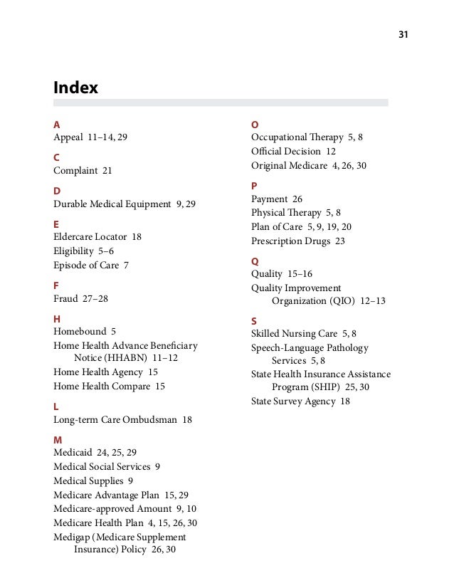 Medicare & Home Health Care CENTERS for MEDICARE & MEDICAID SERVICES Medicare-covered home health benefits. Medicare health plan. Original Medicare. Words in infrequent absences for non-medical reasons, like an red are deffined on pages 272 5. ... View Doc